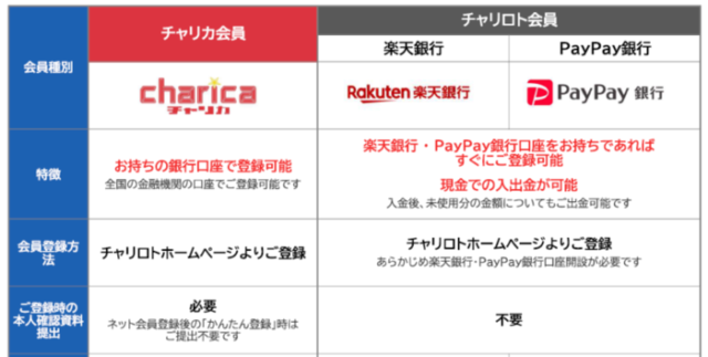 チャリロトには「チャリロト会員」と「チャリカ会員」の2種類があり、登録時にいずれかを選択します。