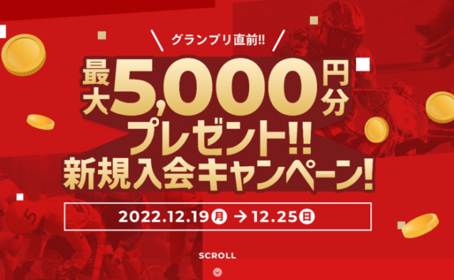 新規登録した月に、1,000円分車券を購入すると、的中結果に関わらず1,000円分のチャリカがもらえます。例えば7月15日に登録した場合、7月31日までの投票が対象です。ワイドを含めて、どの賭け式で投票してもOKです。